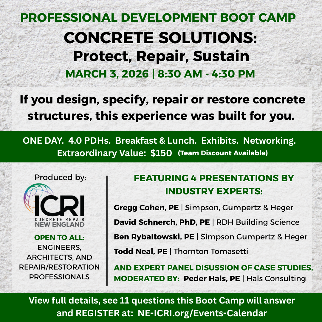 The Boston Association of Structural Engineers (BASE) hosts dinner meetings with guest presenters bi-monthly from 5:30–9 p.m. BASE President Justin Kordas, PE invites SEAMASS members to attend one meeting for free (a $100 value that covers the costs of meal, drinks, and presentation).