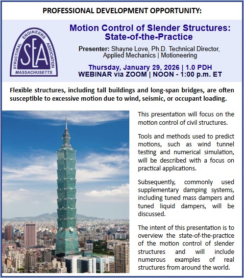 SEAMASS members who are licensed structural engineers are encouraged to consider joining the SEAMASS Board of Directors for the next fiscal year. Also, any member is invited to sit in as a guest at an upcoming SEAMASS Board meeting. Meetings are typically held on the 3rd Wednesday of each month. Please contact SEAMASS Secretary Ellen Swanson, PE to indicate that you would like to attend, and to confirm the meeting time.